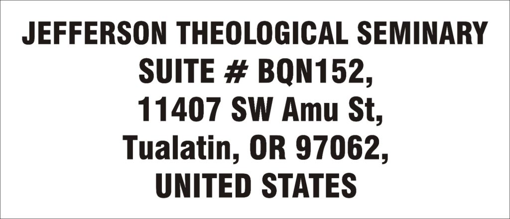Virtual AddressPHONE+ 1 907-331-6460FAX+ 1 844-575-0290EMAILadmin@jeffersonseminary.comWEBSITEwww.jeffersonseminary.com